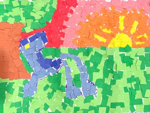 Did you know that Islamic artists and artists in the Byzantine Era used mosaics to fill the walls of their mosques and churches? Though they used real tile and paint that took months and months to complete, we used cut paper and glue to create our mosaics in three weeks.