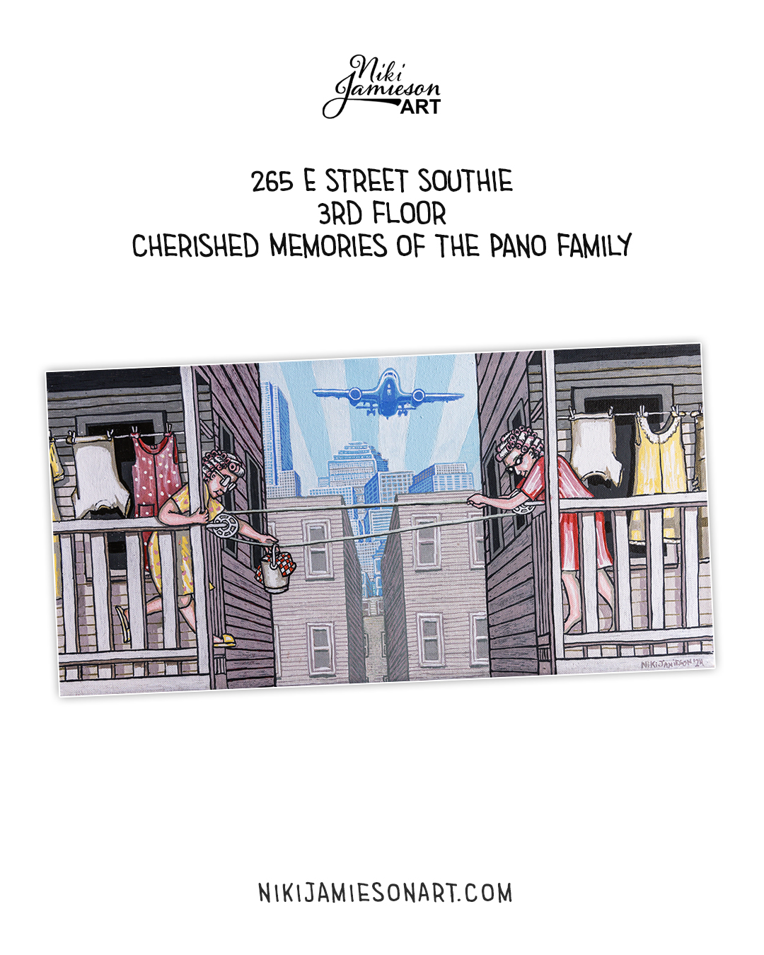 Step into the charm and character of Old South Boston with a nostalgic painting series inspired by life in Southie during the 1970s. These detailed, story-driven paintings depict the Pano family in their triple-decker home at 265 E Street—capturing the heart of a neighborhood where community, family, and everyday moments defined a generation.