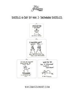 Doodle-a-Day by Niki J Art Series Pen and ink illustrated snowman dad jokes packed with frosty puns, charming hand-drawn artwork, and laugh-out-loud winter humor for all ages. Each detailed black-and-white illustration brings whimsical snowmen to life with expressive personalities and clever wordplay, blending classic dad humor with timeless pen and ink artistry. Perfect for holiday […]